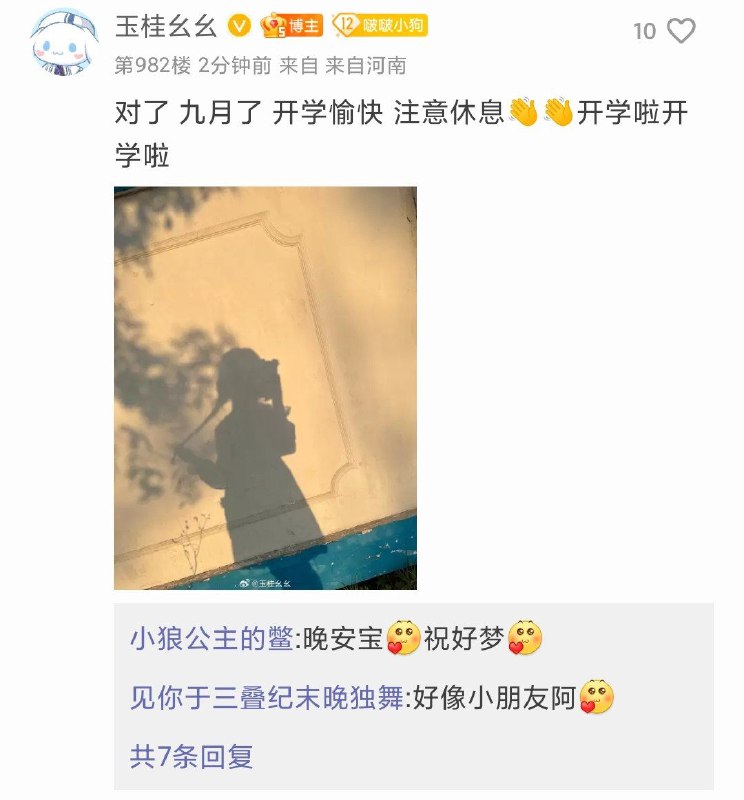 对了 九月了 开学愉快 注意休息